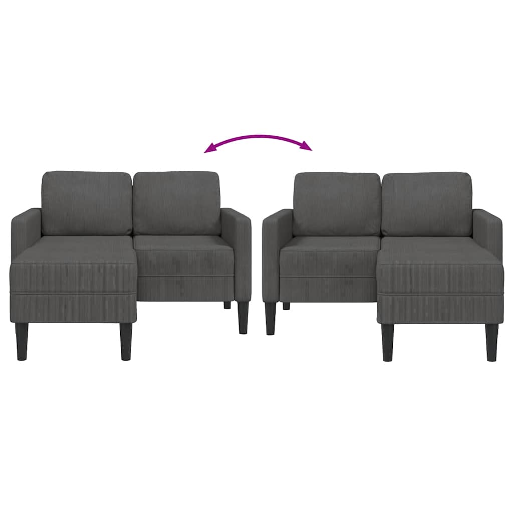 kétszemélyes, L alakú, sötétszürke, lenvászon kanapé heverővel 125 cm