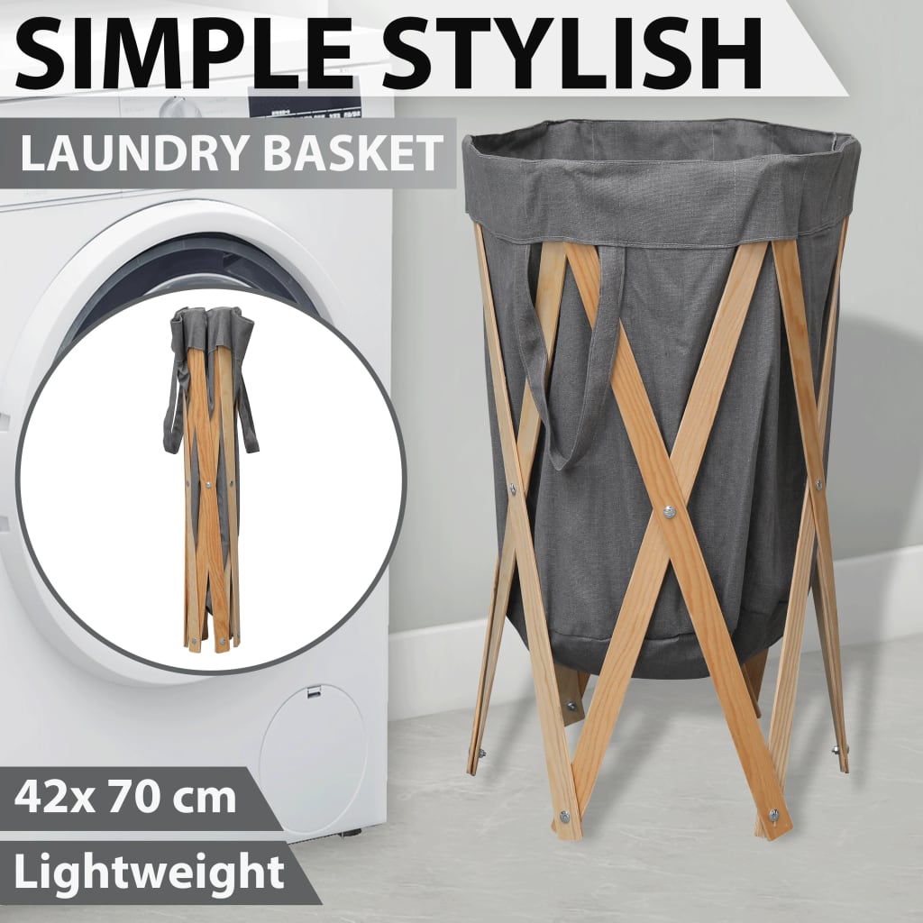 Szennyestartó kosarunk erős és stabil favázzal, valamint egy szövetzsákkal rendelkezik. A szövetzsák könnyű, strapabíró, kivehető és könnyen mosható. A kosár összecsukható, így használaton kívül helytakarékosan tárolható.