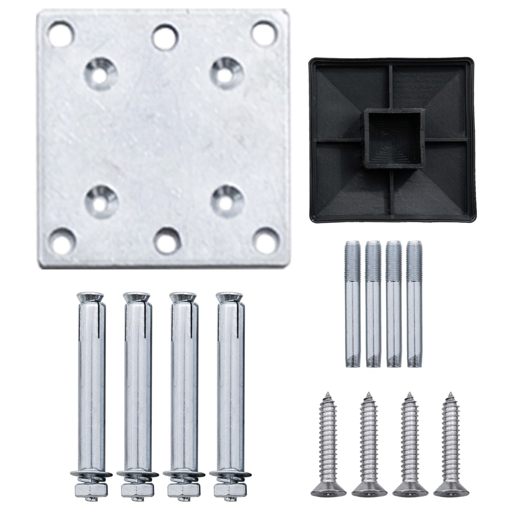 A szett 9 WPC kerítéslécet, 1 oszlopot, 1 acélalapzatot és 1 alumíniumsínt tartalmaz.