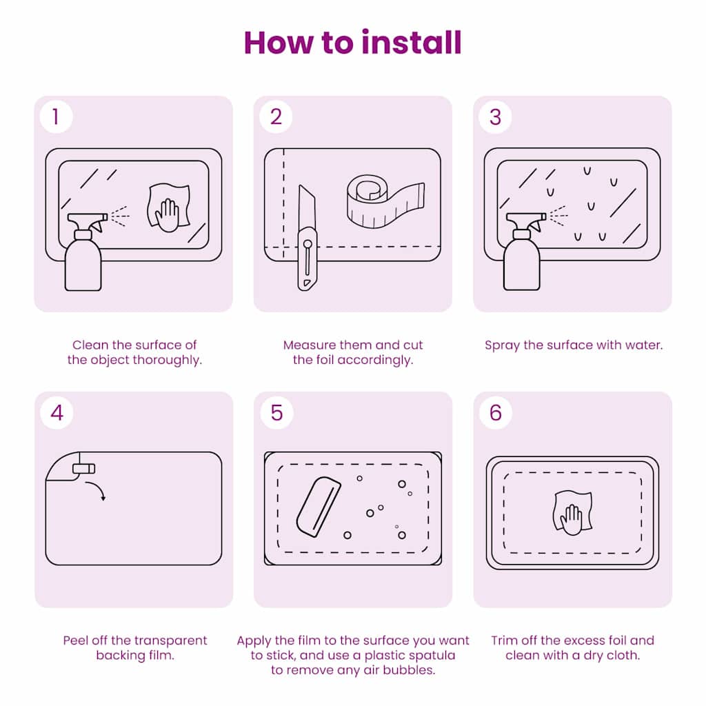 - Tartós PET Műanyag: A PET műanyagból készült Tükör Film erős és megbízható, hosszú távra tervezve. Ellenáll a kopásnak, és évekig megőrzi a formáját.