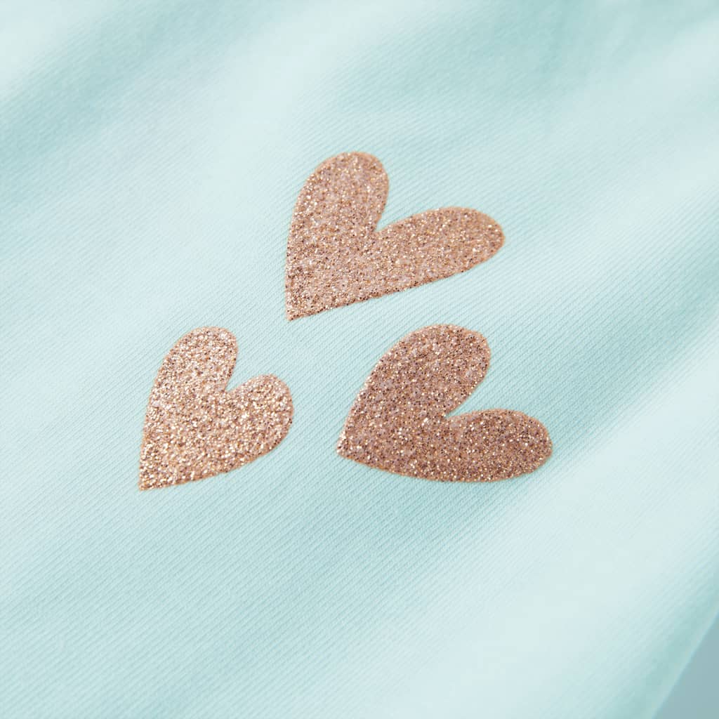Ez a gyerekfelső elasztikus vállpánttal és egyenes szabással rendelkezik. A csillogó szívecskék elegánssá és gyönyörűvé varázsolják a gyerekfelsőt. A gyerekeknek szánt felső 95% pamutból és 5% elasztánból készült a puha és kényelmes érintés érdekében.