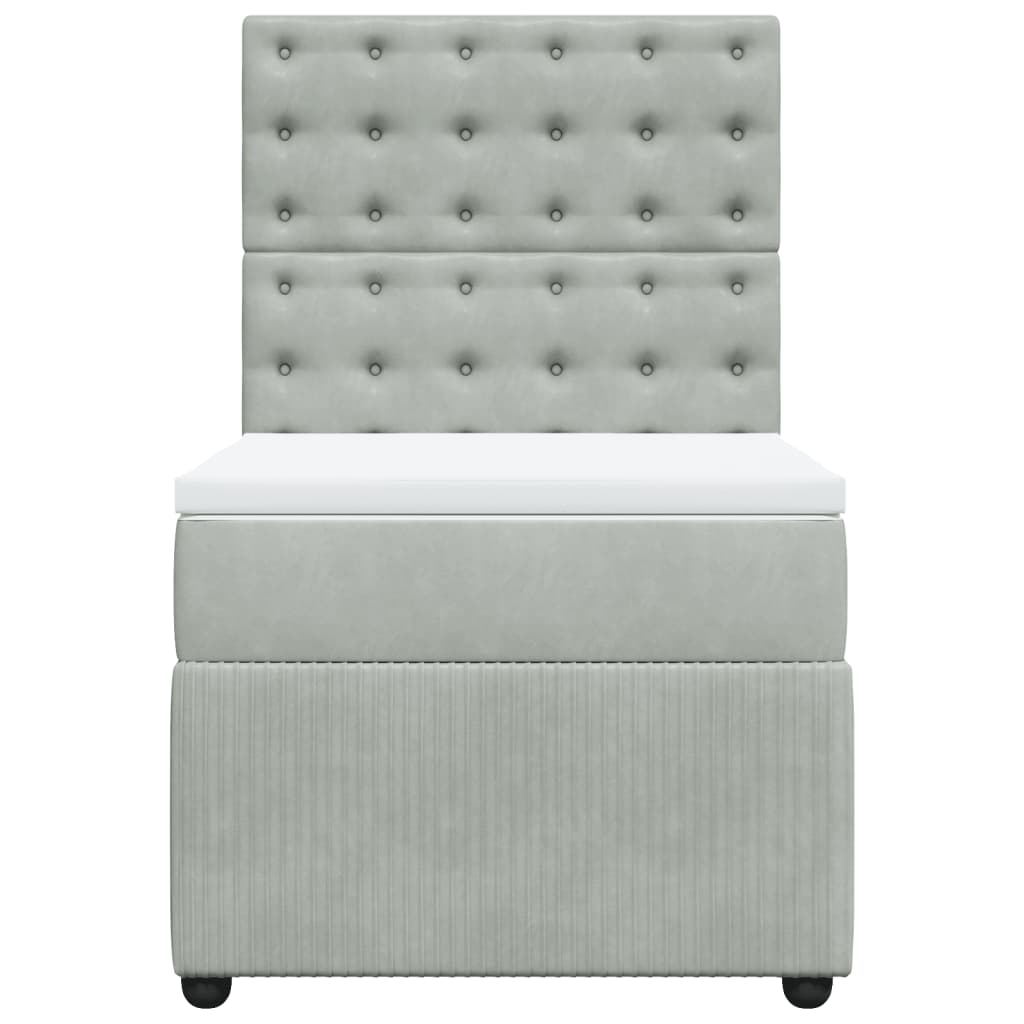 világosszürke bársony rugós ágy matraccal 90 x 200 cm