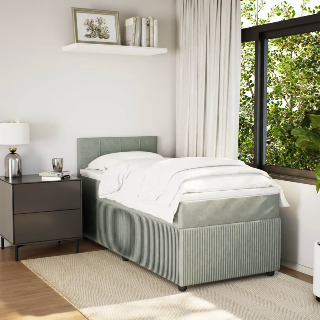 világosszürke bársony rugós ágy matraccal 90 x 200 cm