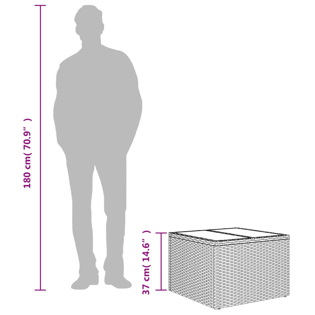világosszürke polyrattan üveglapos kerti asztal 55x55x37 cm