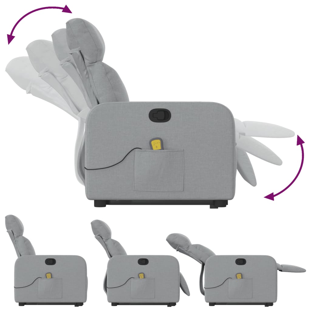 világosszürke szövet felállást segítő dönthető masszázsfotel
