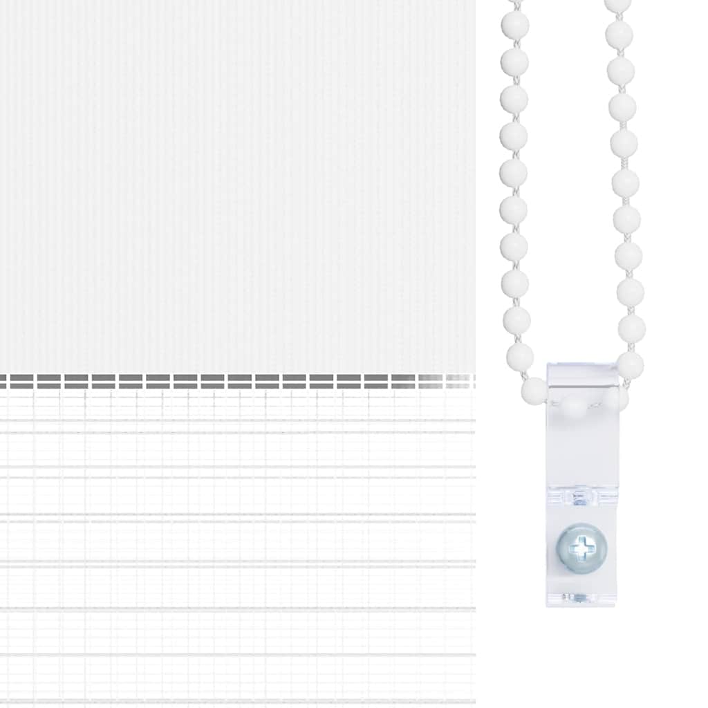 - Magánélet és napvédelem: A kétrétegű kialakítás váltakozóan átlátszó és átlátszatlan szövetpaneleket tartalmaz. A fény könnyen szabályozható a láncos emelő segítségével, így a szoba megvilágítása zökkenőmentesen állítható az áttetszőtől a teljesen sötétig.