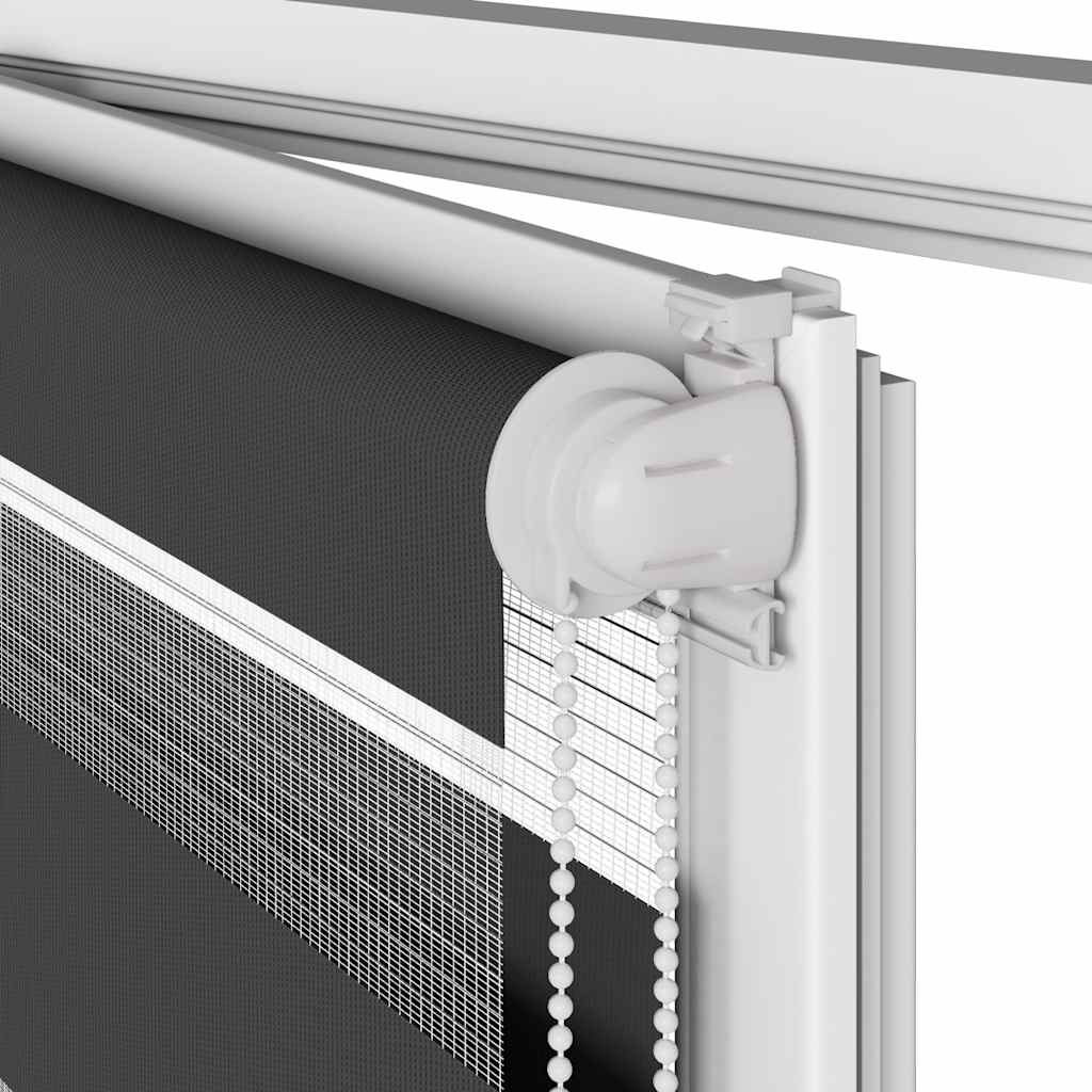 - Magánélet és napvédelem: A kétrétegű kialakítás váltakozóan átlátszó és átlátszatlan szövetpaneleket tartalmaz. A fény könnyen szabályozható a láncos emelő segítségével, így a szoba megvilágítása zökkenőmentesen állítható az áttetszőtől a teljesen sötétig.