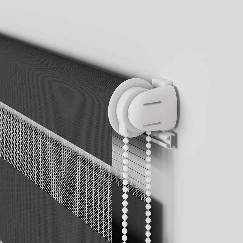 - Magánélet és napvédelem: A kétrétegű kialakítás váltakozóan átlátszó és átlátszatlan szövetpaneleket tartalmaz. A fény könnyen szabályozható a láncos emelő segítségével, így a szoba megvilágítása zökkenőmentesen állítható az áttetszőtől a teljesen sötétig.