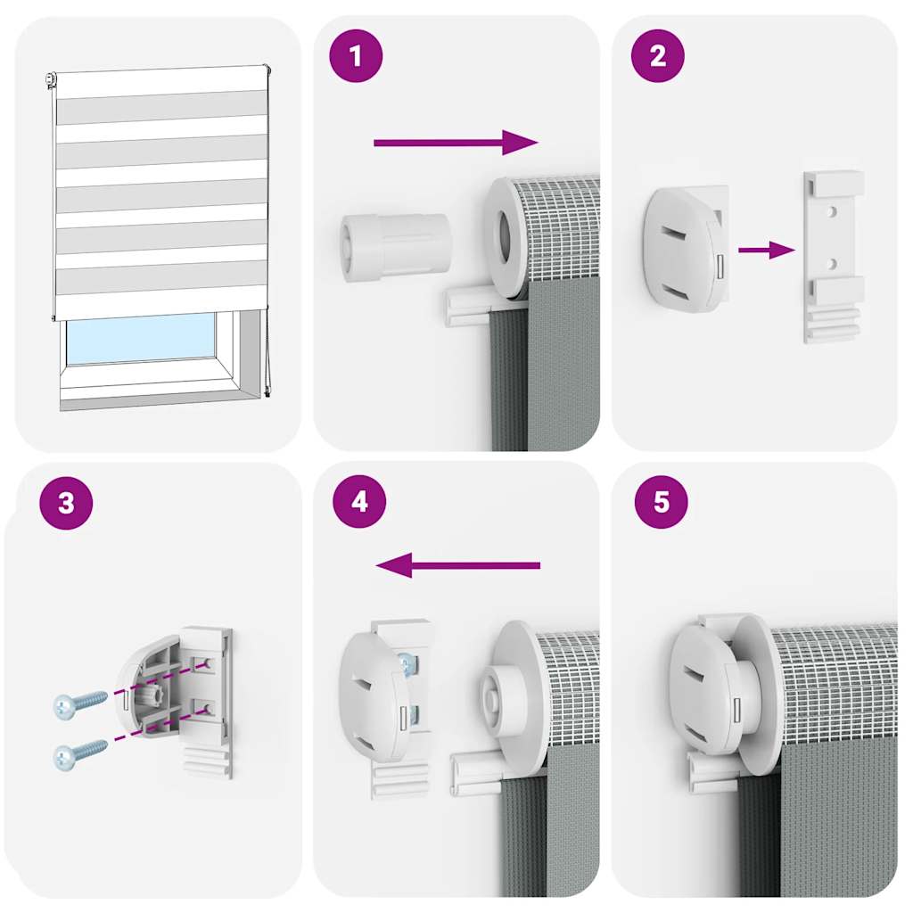 - Két összeszerelési mód: A zebra redőny rögzíthető a falhoz vagy az ablakhoz csavarokkal vagy fúrás nélkül, szorítókonzolok segítségével, az Ön igényeitől függően.